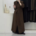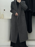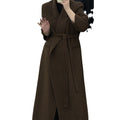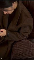 The oversized, loose fit allows for comfortable layering, and the mid-length cut balances practicality with elegance.