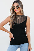 Ribbed Texture Mesh Cutout Knitted Sweater Vest