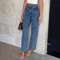 From Paris to Melbourne – Contemporary Fit with Beaded Flair Experience confidence in these straight-leg jeans with an angled waistline. Showcasing delicate bead embellishments and a gently frayed hem, this mid-rise denim combines bold shapes with enduring style.