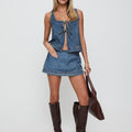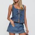 From city streets to sunny escapes, this sleeveless two-piece denim set combines comfort and signature style.