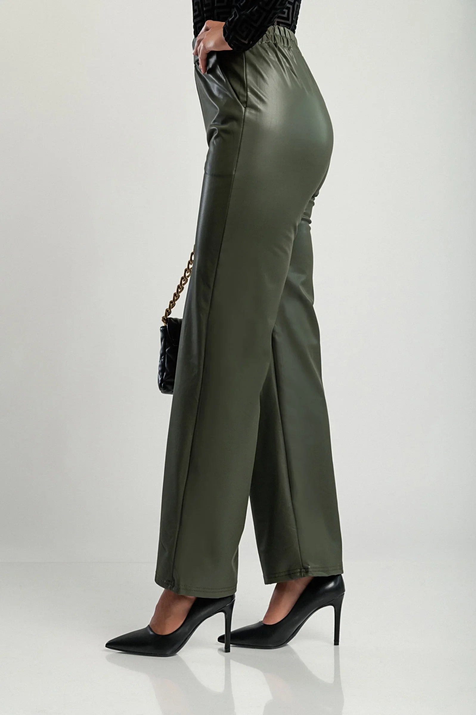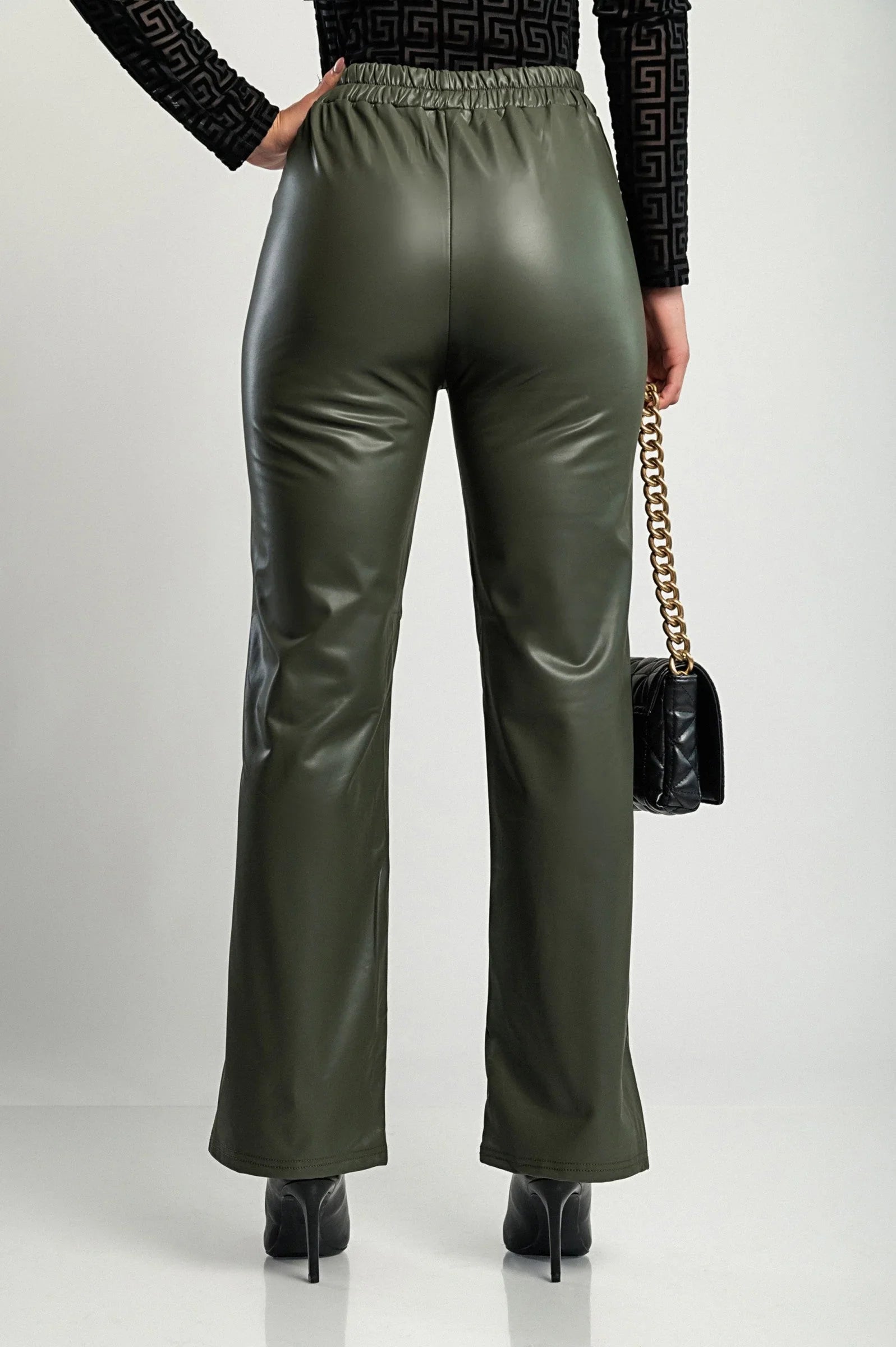 Crafted from premium imitation leather, these pants offer all-day comfort with their soft, stretchy fabric.