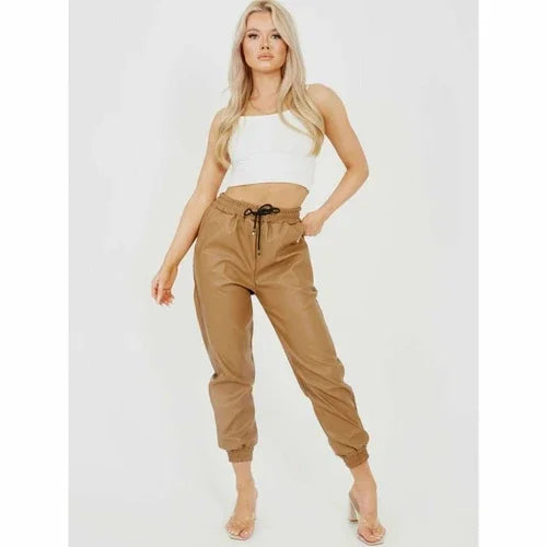 Faux Leather PU Jogger Trousers