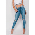 These light wash skinny jeans feature ripped and embroidered details for a stylish touch.