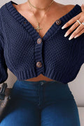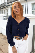 Cable Knit Button Crop Navy Cardigan