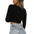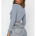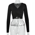 Top Cross V-neck Stitching Slim-fit Long-sleeved
