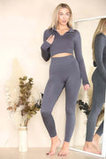 Key Features: - Two-piece ensemble: long-sleeve zip-up top and leggings - Ribbed stretch fabric that is breathable, moisture-wicking, and contours your shape - Half-zip design for customizable ventilation and added style - High-waisted leggings that smooth and enhance your silhouette for confident wear - Versatile enough to transition from workout sessions to casual wear Please note: Slight variations of 1–3 cm may arise due to the production process.